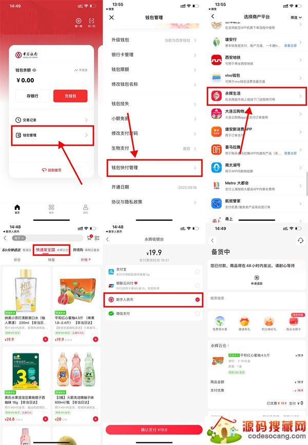 1、数字人民币APP->钱包管理->快付管理->推送永辉生活快付->将“永辉生活”APP更新到最新版本;