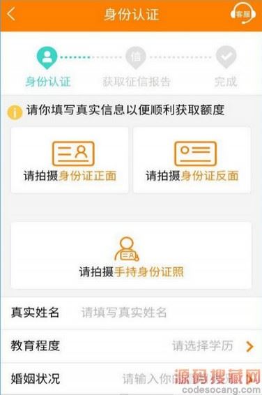 3、登录成功后即进入身份认证界面,用户需要上传身份证及填写相关信息后点击下一步;