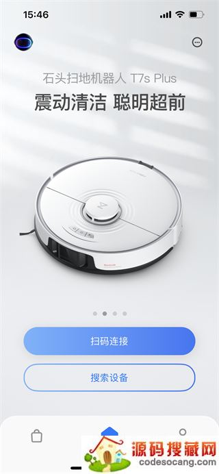 2、然后进入app,在首页中你可以选择扫码连接或者搜索设备连接。