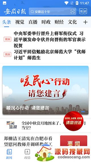 安徽日报是由安徽日报社打造的一款时政类综合信息服务平台,追求真实、客观、权威、快速的新闻理念!在这里用户可以随时查阅当期和往期的新闻报道,了解第一手新闻资讯,并且每天的热门新闻软件都会自动推送给用户。除了图文类的新闻报道外,软件还开设了视频新闻报道,将所有的新闻视频集中在一起,方便用户浏览。安徽日报app让你可以足不出户就了解到各类时政新闻,方便广大群众了解当地的最新政策。