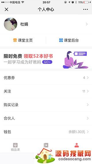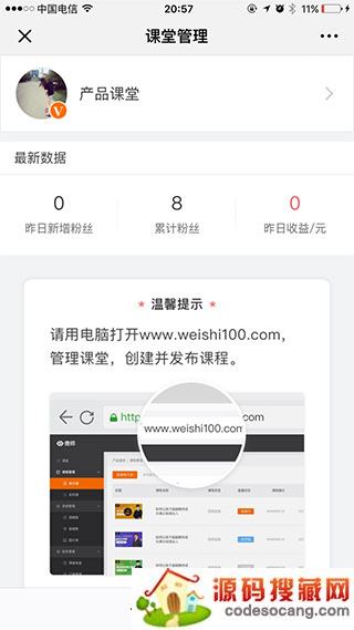 7、点击个人中心中的课堂后台就可以看到每日新增的粉丝以及累计的粉丝和昨天的收益了。