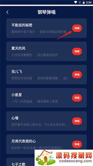 3、选择完之后,选择自己喜欢的歌曲,点击弹唱按钮;