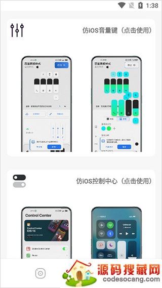 2、还可以仿ios的音量键、控制中心、DUCK栏、桌面效果等等;