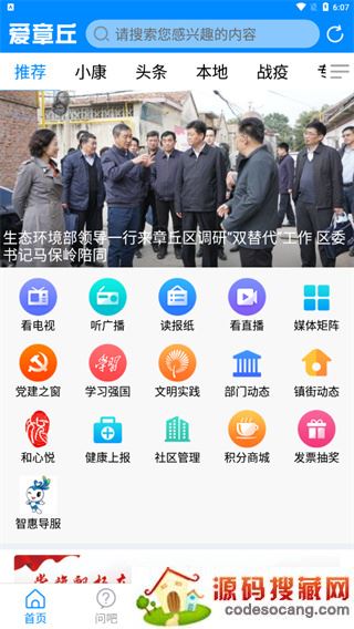 爱章丘app是由济南市章丘区融媒体中心官方打造的新媒体平台,结合章丘本地报纸、电视等媒体资源,为市民带来了电视、听广播、读报纸、直播、推荐、头条、本地、政务、问政、随手拍、爆料等众多功能。软件为用户提供了多项优质生活服务,公交查询、企业招聘、一件事办理、学习强国、章丘疫情防控等,用户随时随地都能在平台上进行预约和办理,是章丘区融媒体中心占领移动端主阵地,坚持移动优先、推动媒体融合,实现宣传效果最大化和最优化的重要工具。
