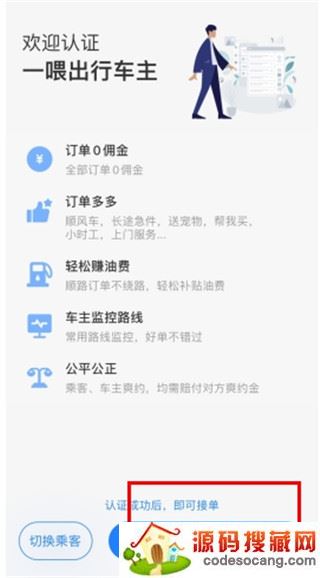 1、切换身份,乘客和司机都可以使用,只是根据对应的身份登录进入。2、查看订单,正在进行中的订单可以随时去查看,还会推送订单给司机。