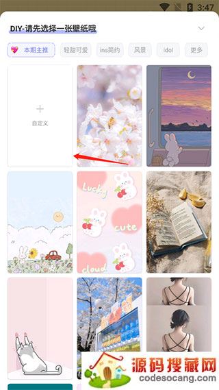 1、进入软件选择自己喜欢的锁屏壁纸,或者点击右上角进行DIY设置