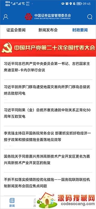 1、打开中国证券监督管理委员会官方版app,在新闻和政务界面中用户可以查看实时的证券新闻、时政要闻、法规等