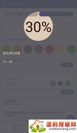 3、百分之三十表示的是蓝色光波过滤量,数值越高屏幕将越暗
