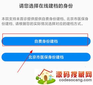 3、然后选择“自费身份建档”,有当地医保的用户可选择下方的医保建档。
