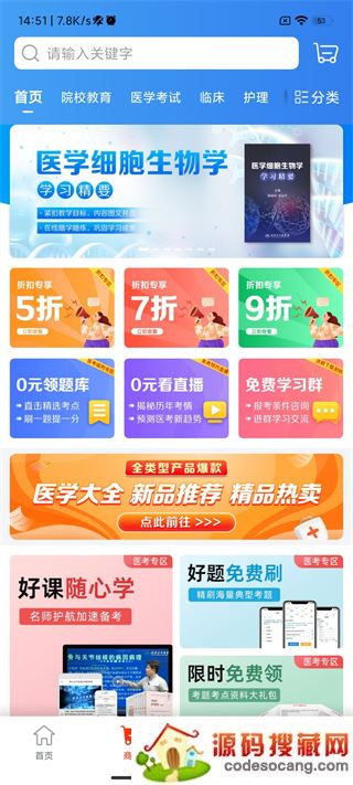4、进入商城界面后,这里准备了海量有关医学的书籍和课程;