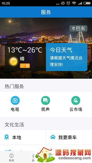 云上巴东app是一款为巴东县人们提供政务服务和资讯阅读的移动服务平台,着眼于为巴东县住户出示新闻报道、政务服务与便民服务。软件实时更新热门的新闻资讯,有关于巴东县的大小事,也有关于全国各地的热门事件,用户可以通过软件了解当地的新闻资讯,还可以知晓全省及全国的实时新闻。云上巴东app最新版还可以在线办理各项便民服务,用户可以打开定位,软件会为用户推送当地的天气情况和温度,还可以查询交通情况,让全乡住户都能感受到网上服务项目产生的便捷。云上巴东app让老百姓可以参与并且了解本地的变化,还将整合湖北省内各类资源发布,形成官方新闻发布和政务服务群。感兴趣的小伙伴快来下载体验吧!