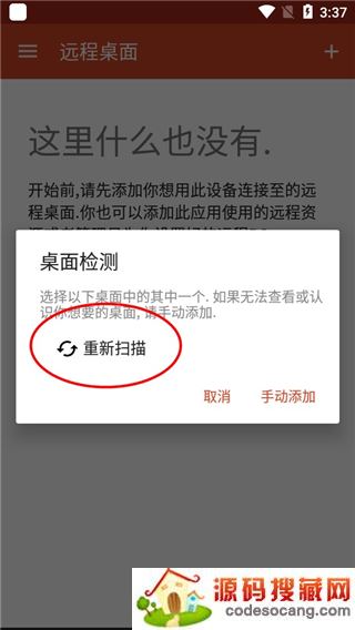 3、此时会出现如下界面,我们只需点击“重新扫描”即可,当然你也可点击手动添加;