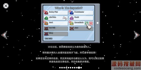 5、讨论过后,就把票投给您认为是伪装者的人。得到最多票的人会遭到驱逐离开飞船,所以要审慎投票!